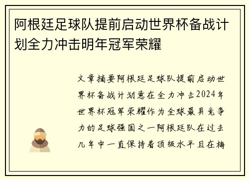 阿根廷足球队提前启动世界杯备战计划全力冲击明年冠军荣耀
