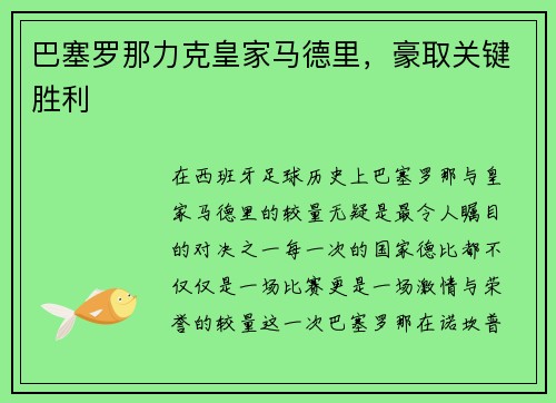 巴塞罗那力克皇家马德里,豪取关键胜利